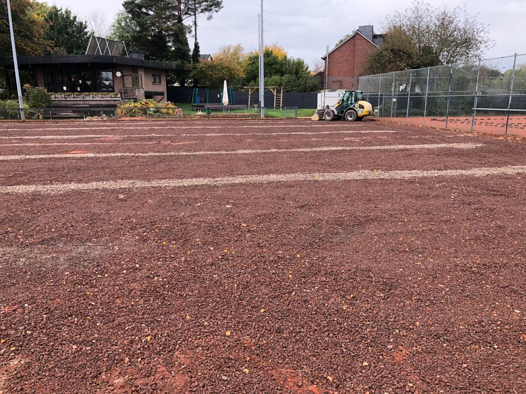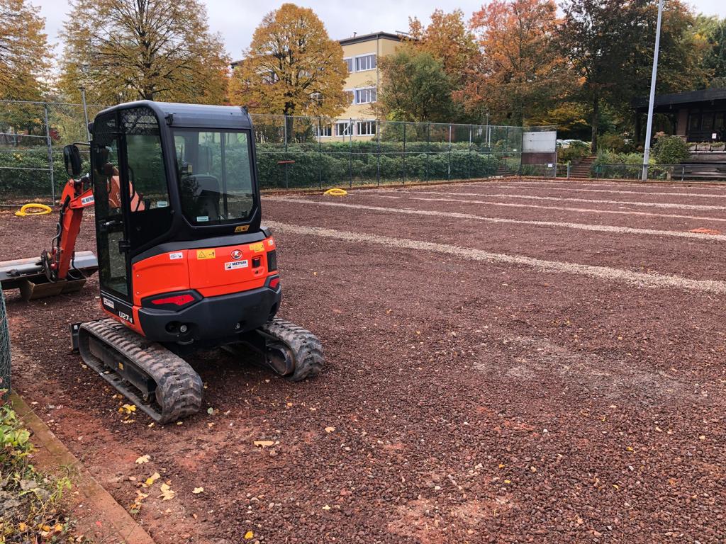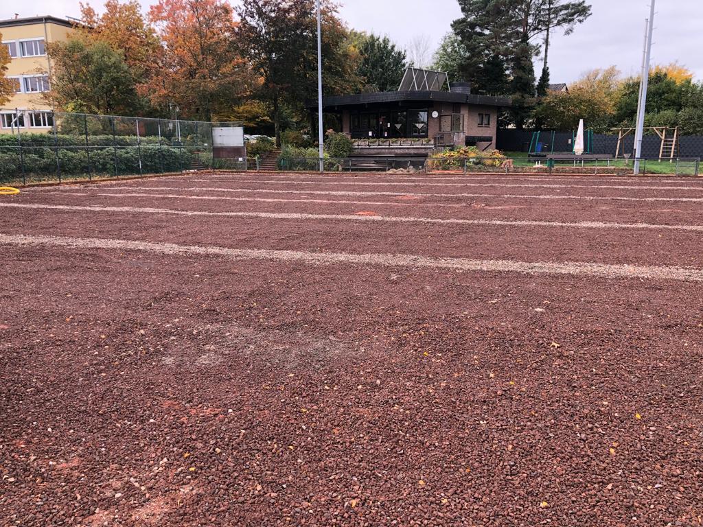 Seit Mitte September laufen die Umbau und Sanierungsarbeiten auf unserer Tennisanlage an der Wilkenkampstraße. Gestartet wurde mit dem Rückbau der alten, maroden Zaunanlage neben unserem Clubhaus. Aber nicht nur der Zaun sondern auch etliche Mengen Grünzeug mußten zurückgeschnitten und entsorgt werden. Viele fleißige Hände aus unserem Club waren hier unter Leitung unseres Platzwartes Friedhelm Freese im Einsatz. Ende September wurde dann der neue Stahlgitterzaun aufgebaut. Unser Mario sorgte dann noch für den Sichtschutz. Es gab dann jedoch keine Pause. Unsere Birke war dran! Schade?! Sie mußte gefällt werden, ihre vielen Wurzeln zerstören sonst das neue Drainagesystem. Die Platzzäune mußten geöffnet, Fahrrampen hergestellt werden. Große Trecker mit Ladeeinrichtungen kamen zum Einsatz, und viele Hände! Alles ehrenamtlich!! Nachdem die Platzeinrichtungen komplett von uns zurückgebaut worden waren, kam die Firma Saremba, baute die Asche und Schlacke zurück und installiert derzeit ein neues Drainagesystem auf die Plätze 1, 2, 4, und 5. In der nächsten Woche gibt es eine neue Beregnungsanlage. Wir werden berichten!